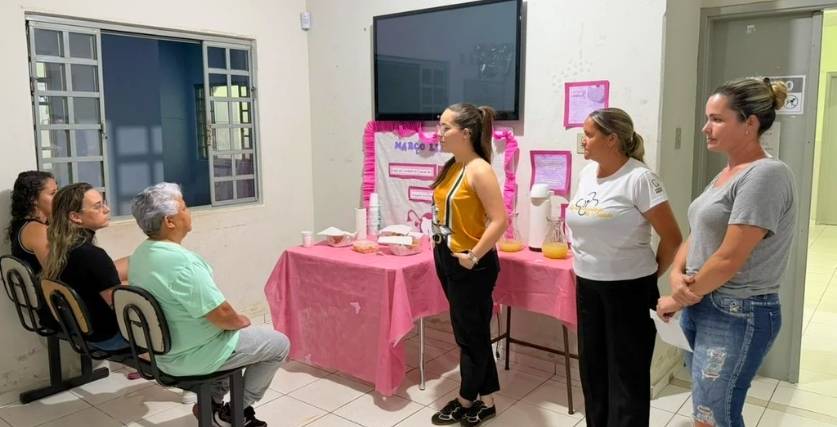 Ação no PSF Carmelita orienta sobre o Março Lilás, destacando a importância do preventivo e da vacinação contra o HPV