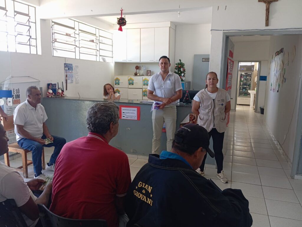 Durante a atividade, conduzida de forma dialogada pelo enfermeiro Regis e pela Agente de Combate a Endemias (ACE) Nívea, os usuários receberam orientações práticas sobre a eliminação de focos do mosquito Aedes aegypti em locais como calhas, caixas d’água e reservatórios atrás de geladeiras. Além disso, foram distribuídos folders e ímãs com o calendário municipal de recolhimento de lixo e entulhos, incentivando a colaboração da comunidade. O enfermeiro Regis também alertou sobre os sinais de alarme da Dengue e a importância de procurar a unidade ao surgimento dos primeiros sintomas.