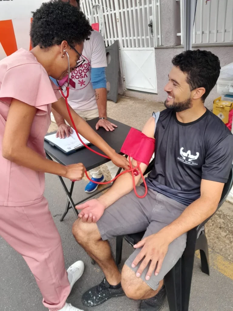 A ação foi um convite da organizadora do evento e paciente oncológica, Cássia, que celebra cinco anos de tratamento e reforça a importância do apoio da rede de saúde. Durante o evento, equipes de imunização estiveram no local para conferir cartões e aplicar vacinas do calendário nacional. Outro profissional realizou a aferição de pressão arterial e ofereceu orientações sobre o autoexame e a saúde da mulher. O evento também teve um caráter solidário, arrecadando insumos médico-hospitalares que foram destinados à Associação Vida Viva, em Varginha.